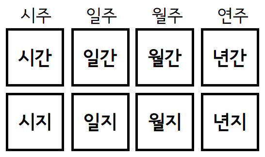 각각의 기둥을 일컬어 년주, 월주, 일주, 시주라고 합니다~