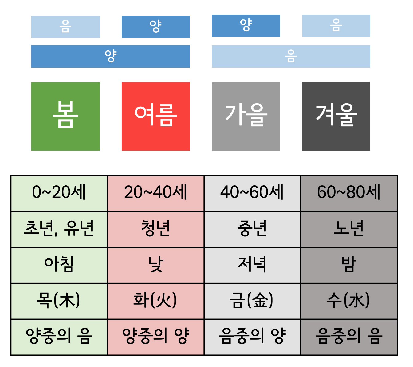 음양, 오행, 인간의 나이를 바탕으로 깊게 곱씹어보며 계절별 특징을 많이 생각해보시기 바랍니다.