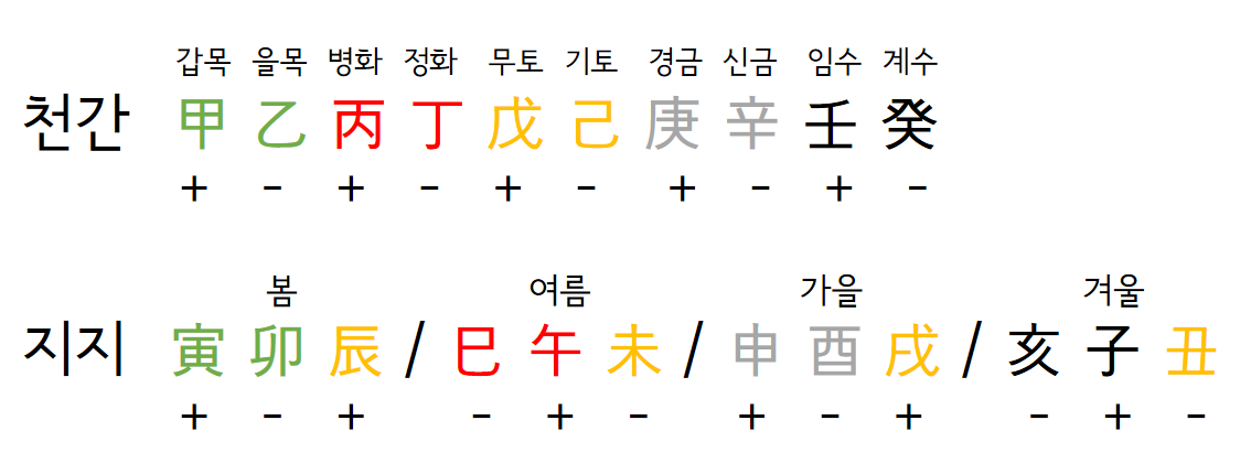 이 한자들 모두가 각자의 음양과 오행을 속성으로 가집니다.